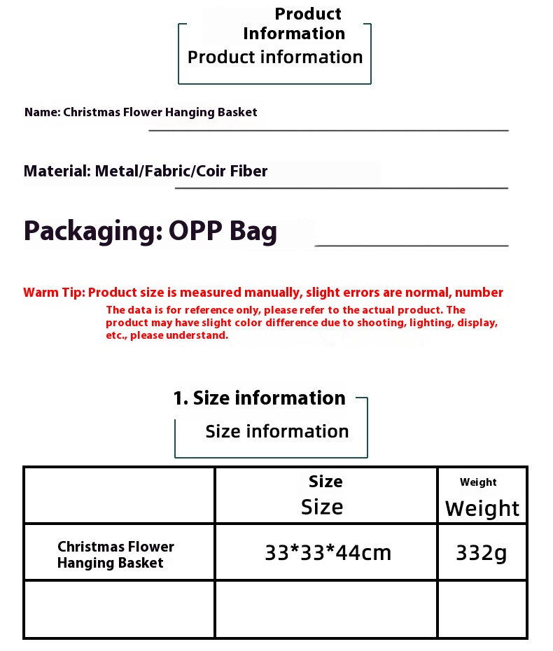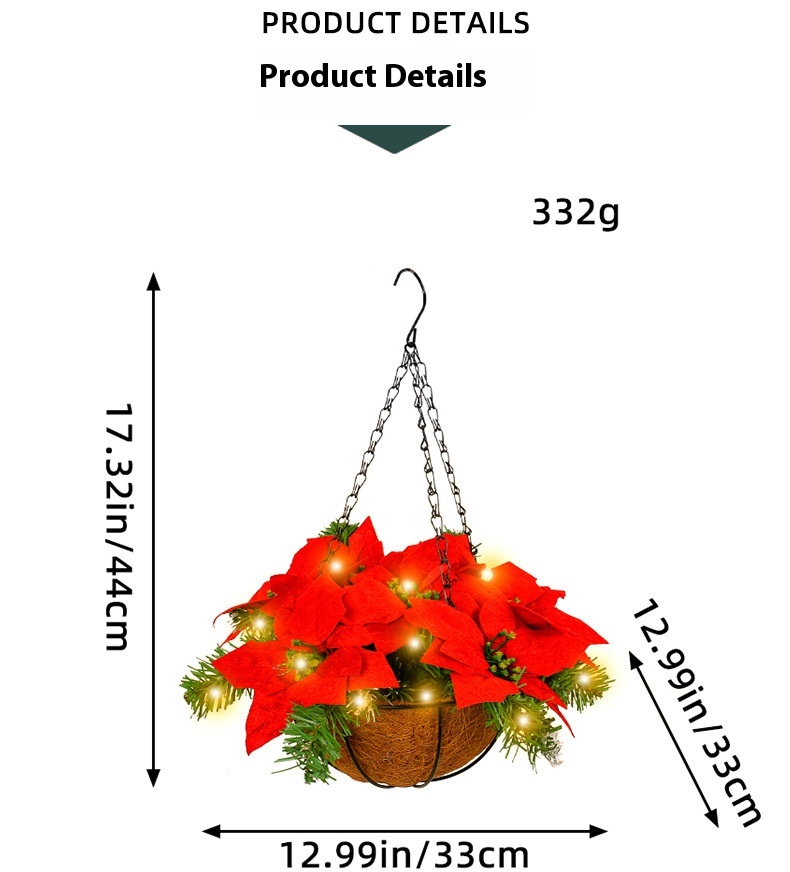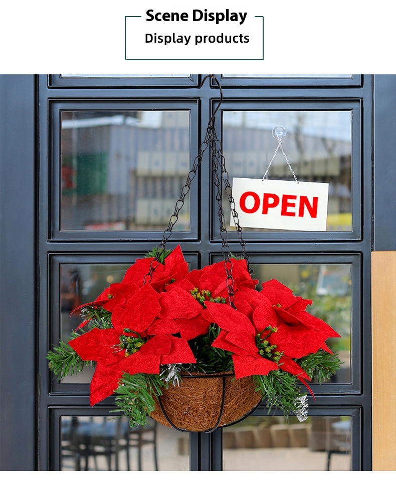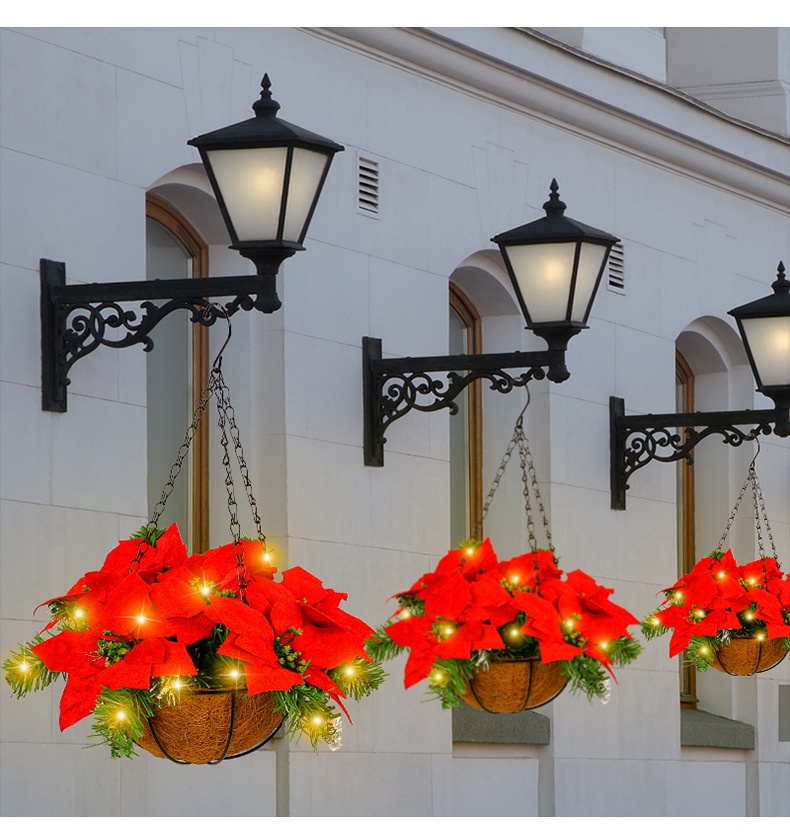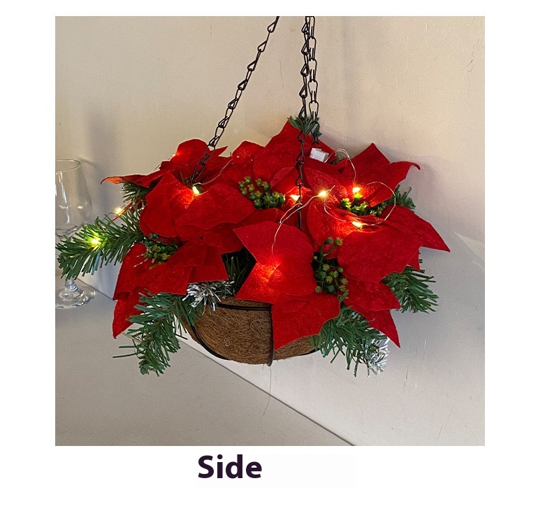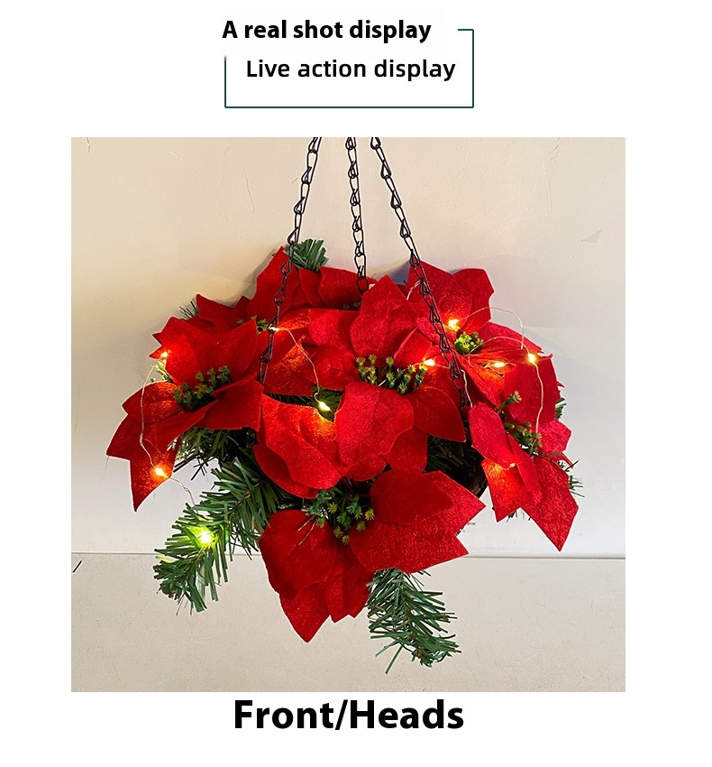Red Christmas Flower Hanging Basket Artificial Flower Wall Hanging Door Decorations
